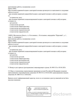 Предоставляет следующие услуги: восстановление зубной эмали и формы зубов, реставрацию зубов, молочных зубов, эстетическую реставрацию, специализируется на терапевтической стоматологии, лечении кист зубов... читать далее